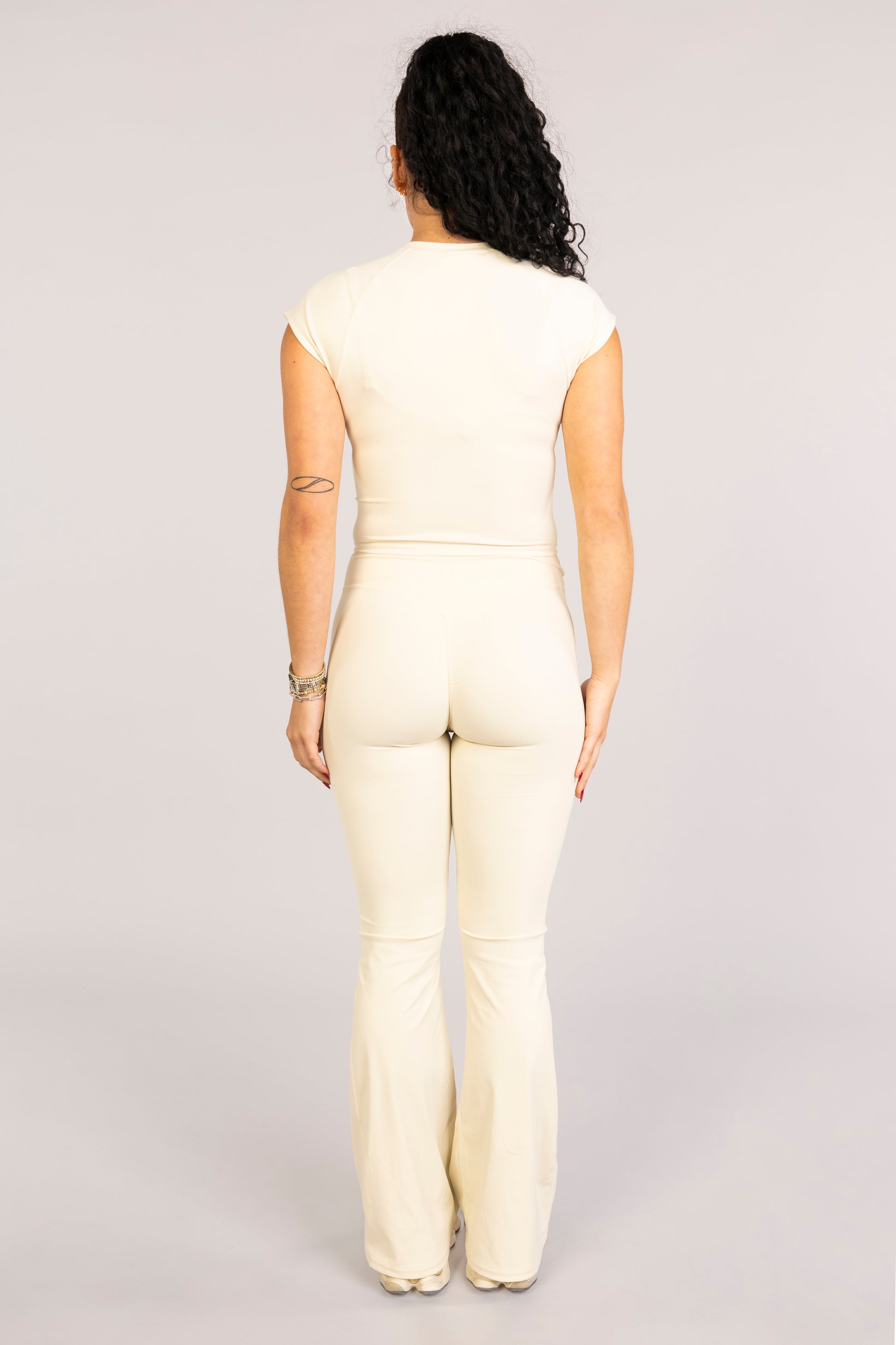 Design: Minimal yet bold, the Nova Flare Leggings feature a streamlined look with clean seams and subtle branding. The crossover waist detail and flare finish set them apart—an elevated design that transitions seamlessly from training to everyday style.